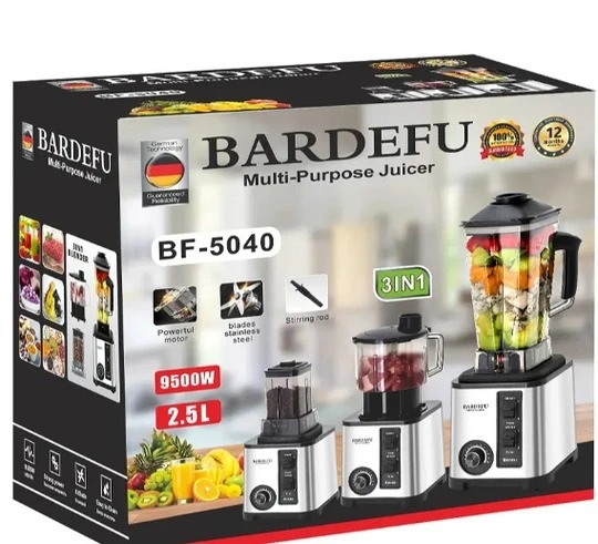Meet the Bardefu BF‑5040 3‑in‑1 Blender—a powerful companion for all your blending, chopping, and grinding needs. With its pure copper 9500 W motor, this heavy-duty appliance handles tough tasks like crushing ice, blending smoothies, grinding spices, and chopping vegetables or meat with ease.