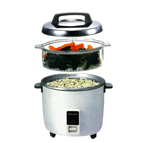 Transform your daily cooking routine with the Panasonic Automatic Rice Cooker, featuring a generous 14L capacity. Designed for ease and convenience, it offers one‑touch automatic cooking, ensuring perfectly cooked rice with minimal effort. Once cooking is complete, the unit switches to a 5‑hour keep‑warm function to keep food ready and fresh. Equipped with a non‑stick anodized aluminum inner pan, cleanup is simple while preventing rice from sticking. The clear steaming basket adds versatility—steam vegetables or chicken simultaneously while your rice cooks. Durable stainless steel lid and handy accessories (measuring cup, rice scoop, lid holder) make it a complete kitchen solution.