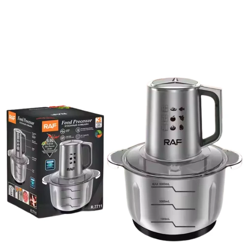 Equipped with a high‑torque electric motor and durable stainless steel blades, it effortlessly minces meat, chops veggies, grinds nuts, and slices fruits with precision. Featuring multiple interchangeable attachments, this compact yet versatile processor lets you tackle daily cooking tasks quickly—whether whipping up kebabs, sauces, doughs, or salads. Safety lock design ensures secure operation, while a non‑slip base keeps it stable on your countertop. Cleanup is a breeze thanks to dishwasher-safe parts and removable components. Sleek and modern in design, the RAF processor fits in any kitchen, simplifying meal prep from breakfast to dinner. If you’re looking for a reliable, multifunctional appliance that saves time and enhances flavor, this RAF processor is an essential upgrade.