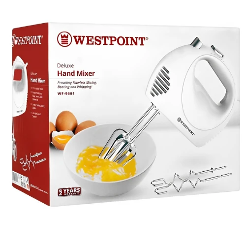 Whip, beat, and mix like a pro with the Westpoint WF-9601 Hand Mixer. Designed for everyday kitchen tasks, it features a powerful motor and 5 adjustable speeds plus a turbo boost, giving you total control for everything from eggs to cake batter.