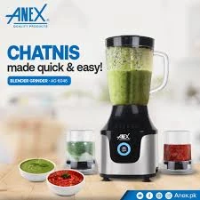 The Deluxe 3-in-1 Blender & Grinder (Model AG-6046) is your all-in-one kitchen powerhouse for blending, grinding, and mixing with ease. Whether you're making smoothies, grinding dry spices, or preparing sauces, this machine delivers powerful performance and versatility in one compact design. Equipped with durable stainless steel blades, multiple jars, and a robust motor, this blender & grinder combo is built for daily use. Its easy-to-use controls and quick-clean setup make it the ideal kitchen assistant for busy households and home chefs alike. Key Features: