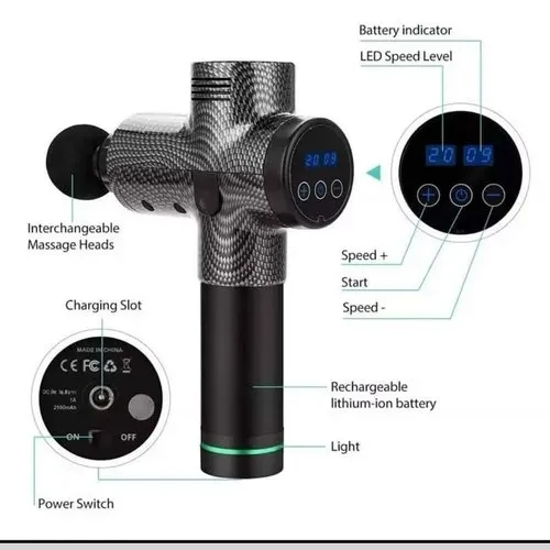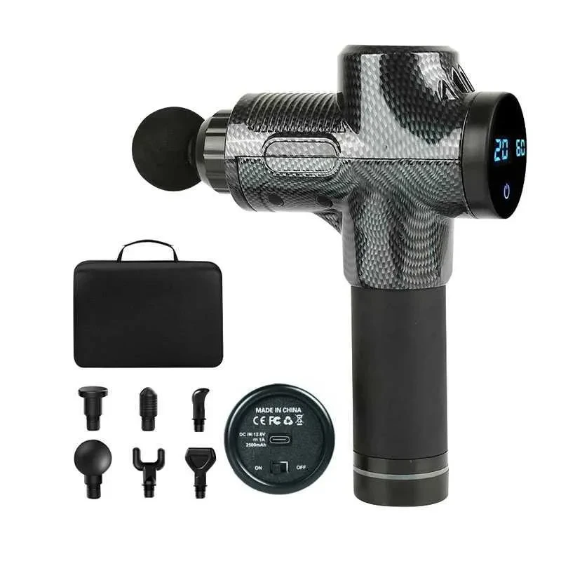 This high-power massage gun is designed to provide strong and effective relief for deep tissue massage and muscle recovery. With 20 adjustable speed levels, you can easily customize the intensity to suit your needs, whether for post-gym relaxation or daily pain relief. The LCD smart display ensures easy control with a modern touch-sensitive interface. Equipped with interchangeable massage heads, it effectively targets different muscle groups for a complete massage experience. Its long-lasting 6-hour battery life makes it reliable for extended use, while the portable and lightweight design with a beautiful storage box makes it easy to carry anywhere. Perfect for athletes, gym enthusiasts, or anyone dealing with back pain and muscle stiffness, this massage gun is your ultimate tool for comfort and recovery.