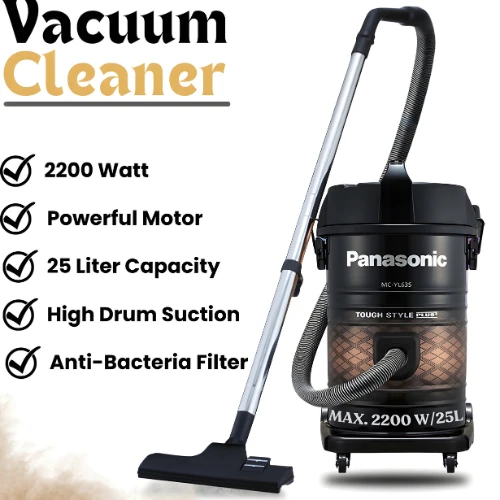 Power through messes big and small with the Panasonic SG-133 Vacuum Cleaner – your go-to solution for deep, thorough cleaning. With a massive 25-liter capacity and a high-performance motor, this vacuum handles everything from fine dust to debris with ease. Whether you're cleaning carpets, tiles, or hardwood, its powerful suction, durable drum body, and easy mobility make it perfect for both home and commercial use. The 220–240V operation ensures strong, reliable performance with every use.