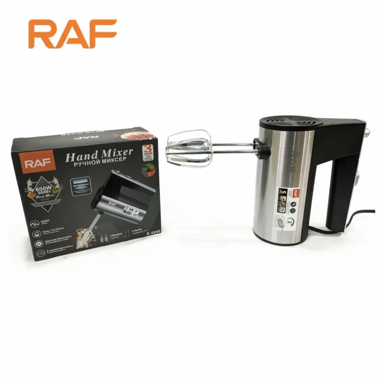 The RAF R-6690 Hand Mixer is your ultimate kitchen companion for effortless mixing, beating, and whipping. With a powerful 600-watt motor, this electric mixer delivers exceptional performance for everything from fluffy cake batter to smooth whipped cream.