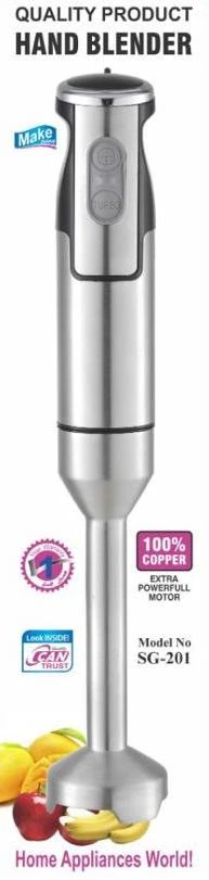 The SECO Japan SG-201 Hand Blender is a premium-quality kitchen appliance designed for quick and efficient blending, mixing, and pureeing. With a slim stick design and a detachable shaft, it fits perfectly in mixing bowls, pots, and beakers. Featuring a 100% blender motor and 2-speed options with 8 variable speed levels, this hand blender provides high power and precision for a variety of kitchen tasks. Ideal for smoothies, sauces, soups, baby food, and more.