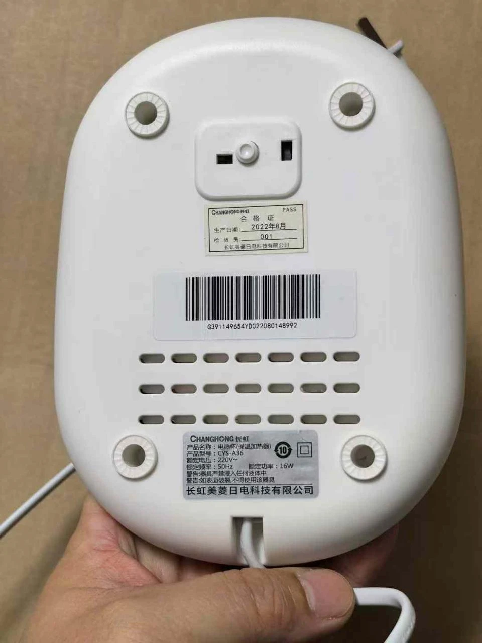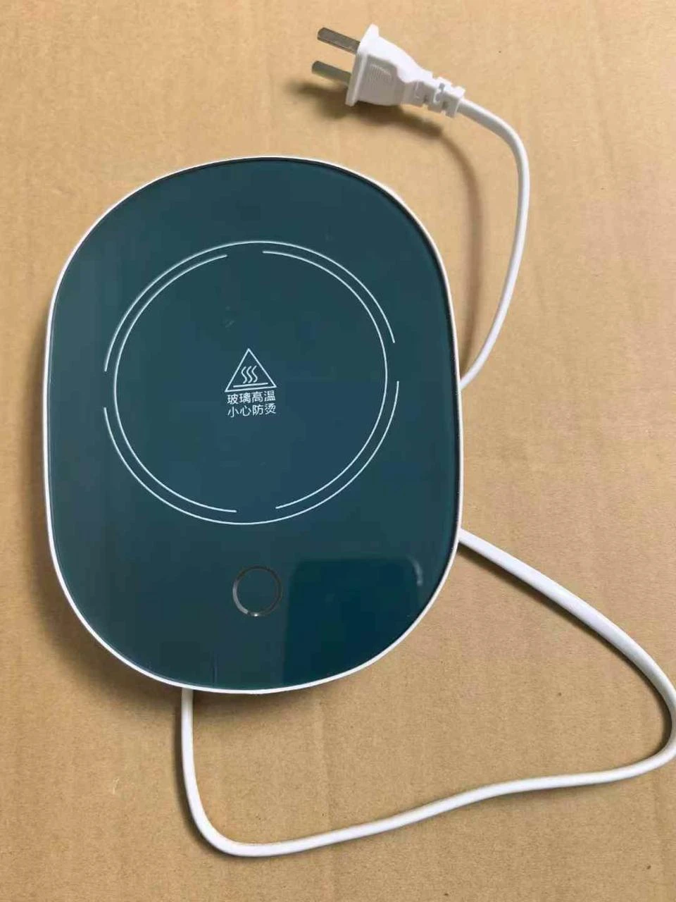 The universal heating plate works with stainless steel, glass mugs, ceramic cups, and even beverage cans. Its compact size—4.3 inches (11 cm) in diameter—fits neatly on any desk, and the durable plastic shell keeps the surface cool to the touch.