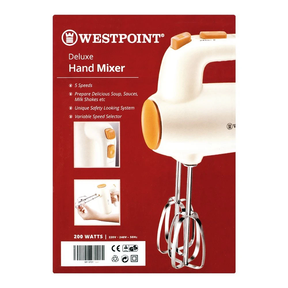 Meet the Westpoint WF‑9701 Deluxe Hand Mixer, a high-performance tool built for seamless kitchen prep. This mixer delivers powerful mixing and whisking with 5 adjustable speeds and a dedicated turbo function for tougher ingredients. With both beaters and dough hooks included, it effortlessly handles anything from whipping cream to kneading light batters.